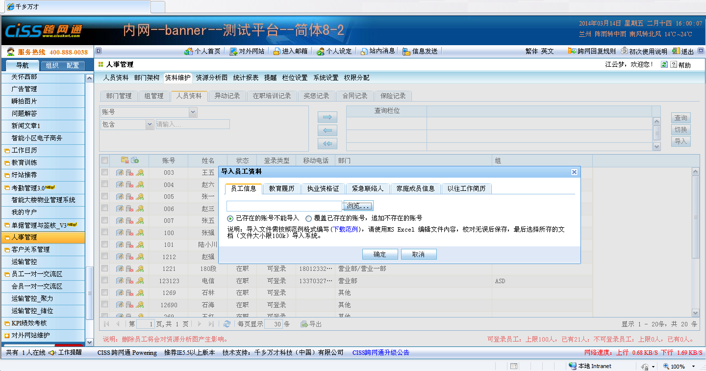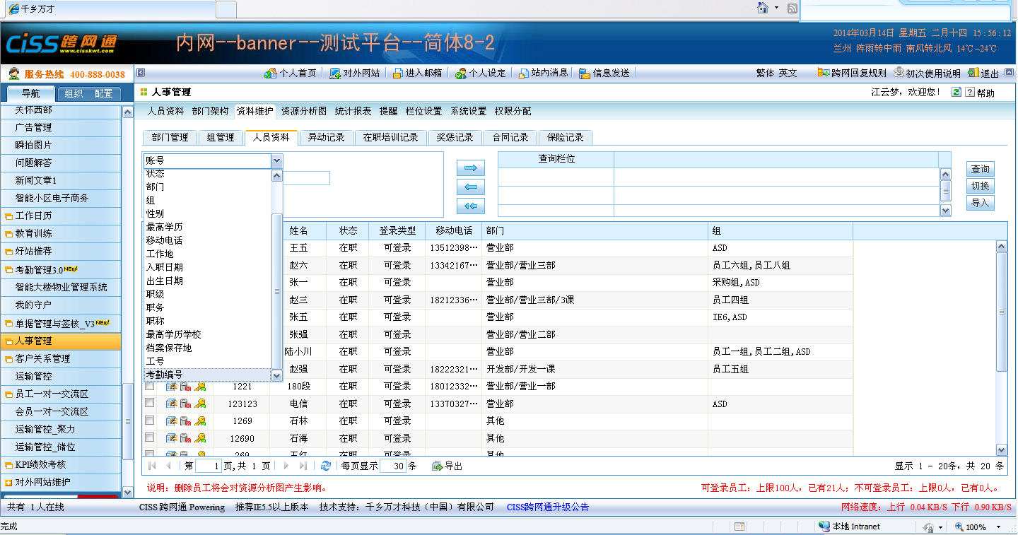 CISS跨网通人事管理3.0新增功能