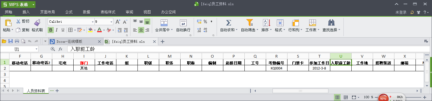 3、资料维护tag下人员资料中在导入页加入自动计算入职前工龄。