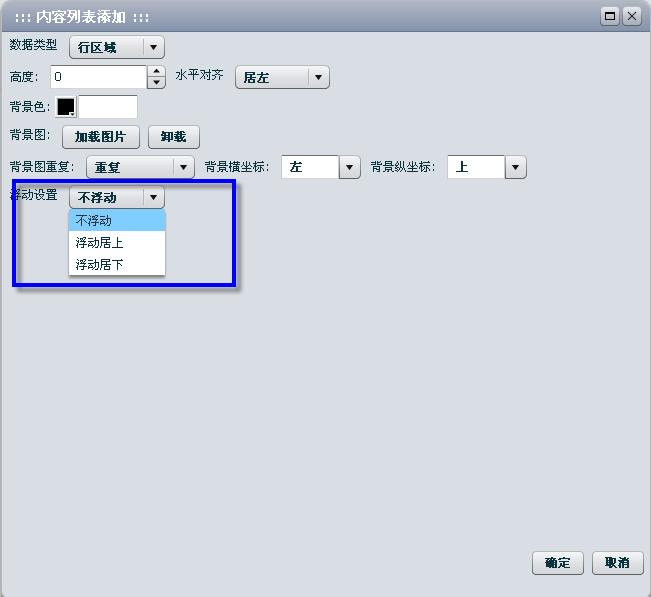 CISS跨网通,相册模板,“图片详细”组件,“行区域”中增加“浮动设置”栏位,下拉可以选择“不浮动”、“浮动居上”、“浮动居下”。如图4所示:
