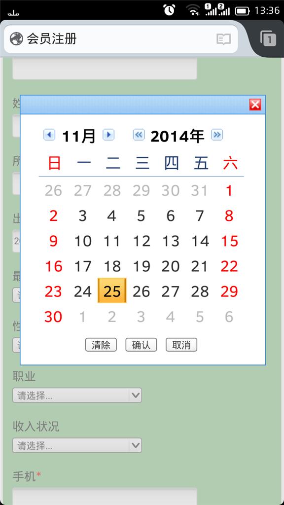 CISS跨网通网站建设,会员注册页手机端页面,调用手机版日期控件。如图所示: