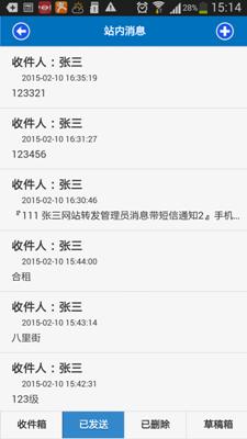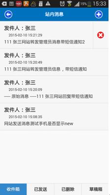 收件箱中可以新增站内消息,用户对已有的消息可以进行新增、查看、删除操作。