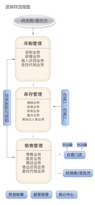 CISS跨网通之进销存管理DIY系统,可以真正帮助中小企业以的投入,实现企业多店面、多厂房、跨地域的管理,可以使企业管理者实时了解企业在实际运营过程中,有关采购、生产、销售、库存,以及往来账款等方面的情况,并且支持多种报警功能,有效降低运营风险。主要包括:采购管理、生产管理、销售管理、库存管理、往来账款、存货核算、统计中心、报警预警八大模块。